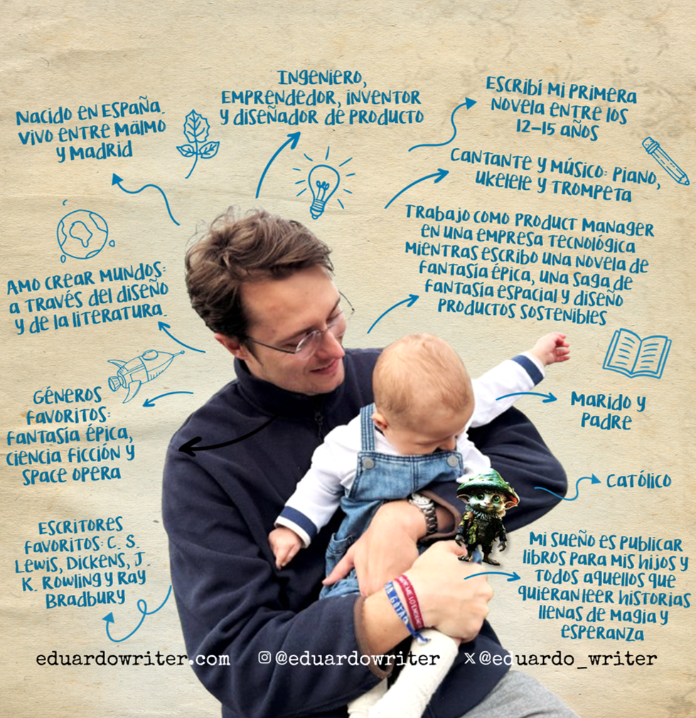 Soy ingeniero, emprendedor, inventor, diseñador de producto y escritor. Desde pequeño me ha acompañado la pasión por crear: dibujaba ciudades futuristas, diseñaba objetos sostenibles e imaginaba mundos llenos de magia.